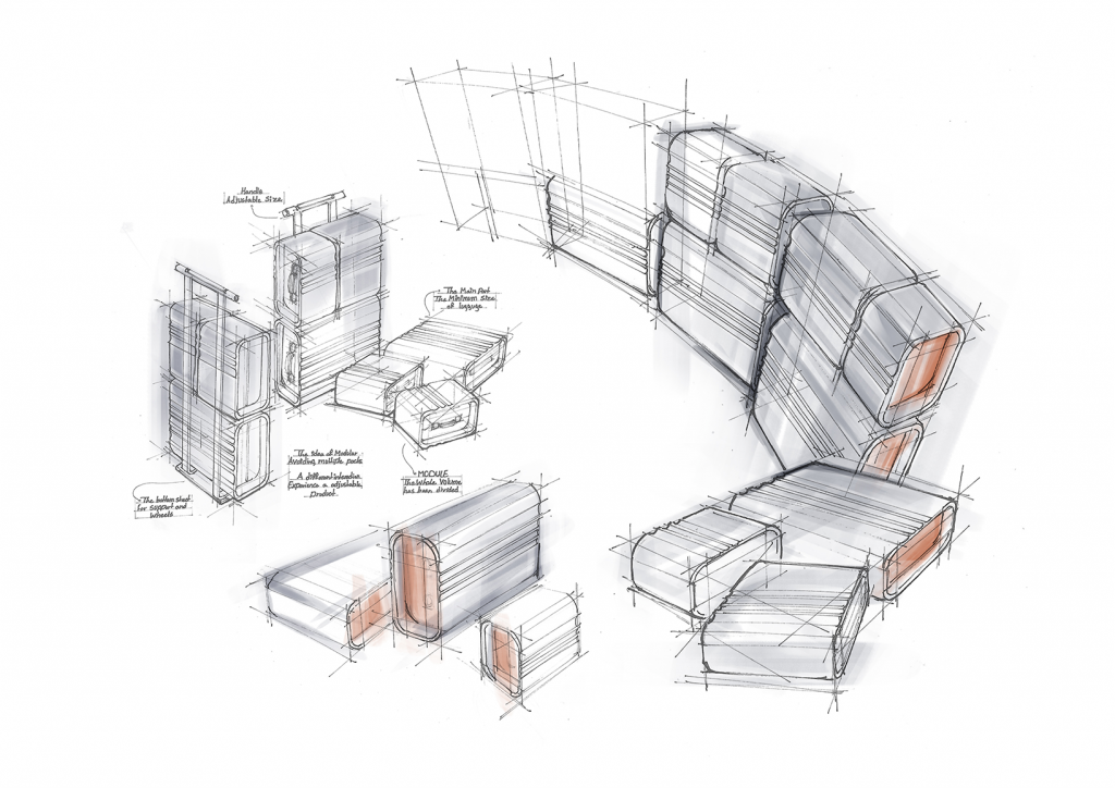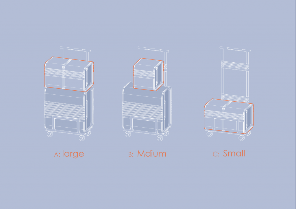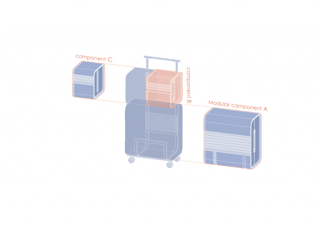 Modular design gives users the opportunity to expand and minimize the product instead of using multiple products. Moreover, users are provided with alternative possibilities for adjusting the luggage based on their requirements which can be playful for people