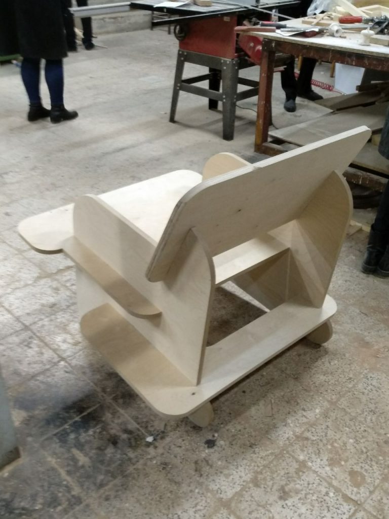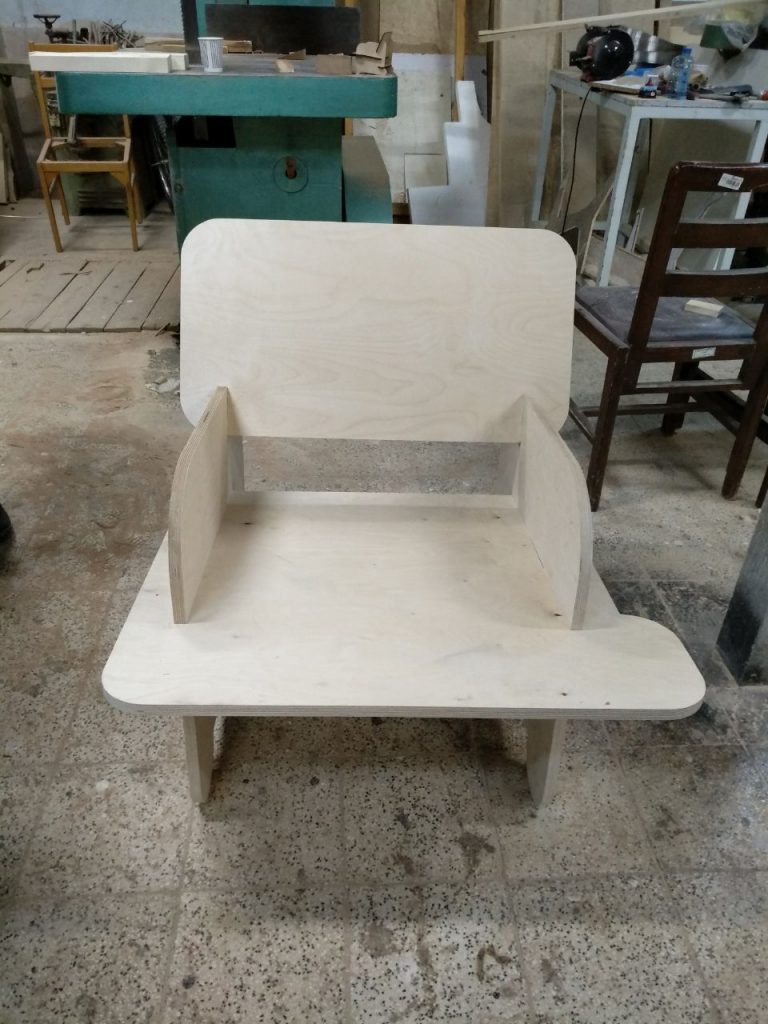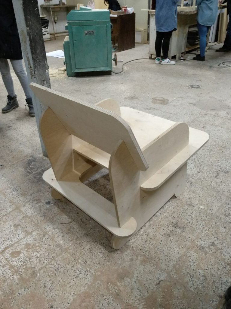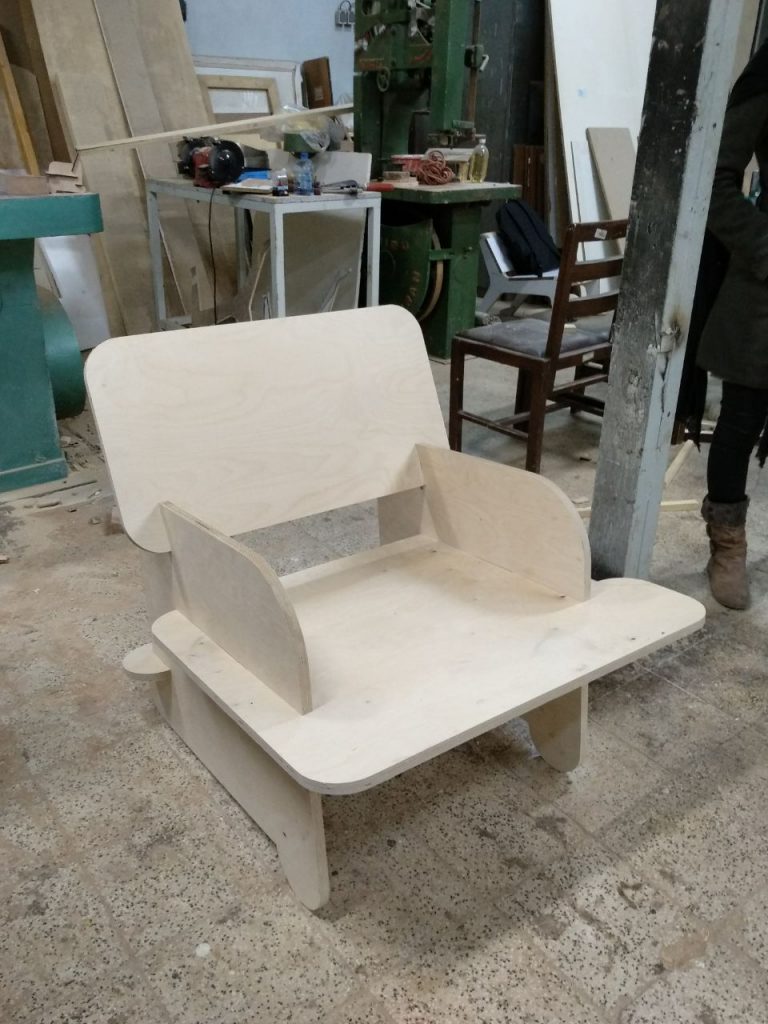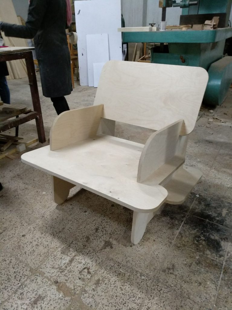 The first project during my bachelor’s was designing a chair for a resting room in the university’s design department which should have required stability and a place for holding coffee for students to hang out.